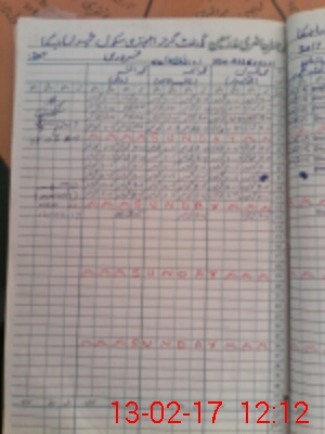 | CNIC | Full Name | Designation | R/C | Absence During Last Calender Month |