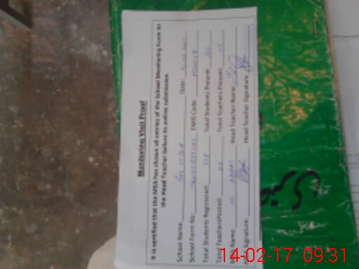 | Attendance Register | Head Teacher | MEA with School | Visit Proof |