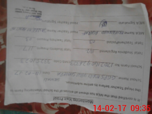| Monitoring Date: 14-02-2017 | Start Time: 14-02-2017 08:45 AM | End Time: 14-02-2017 09:41 AM | Name of MEA: S-**** MO**** AS**** (R**** 06**** | |
