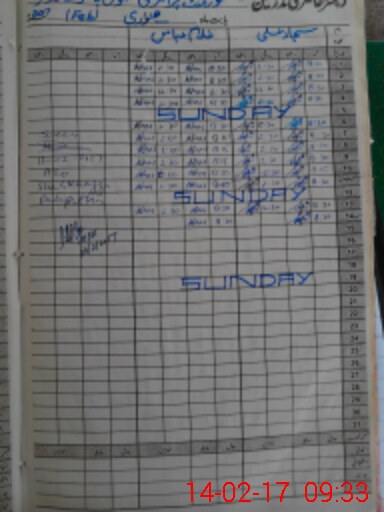 | CNIC | Full Name | Designation | R/C | Absence During Last Calender Month |