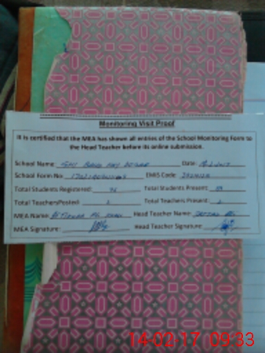 | Attendance Register | Head Teacher | MEA with School | Visit Proof |