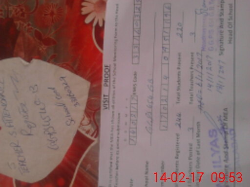 | Attendance Register | Head Teacher | MEA with School | Visit Proof |