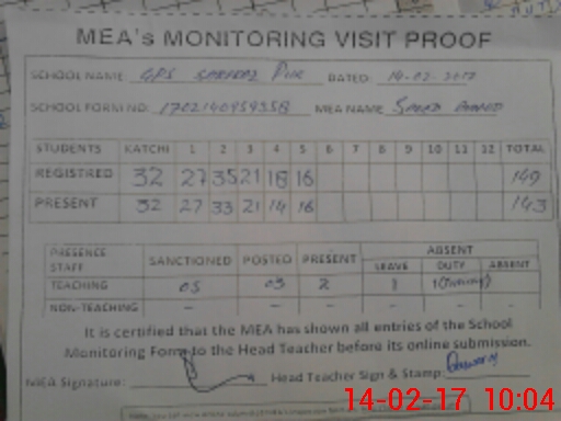 | EMIS Code: 36410309 | Name of School: GPS SARFRAZ PUR, P/O HAJI PUR, NAWAN SHEHR | |||