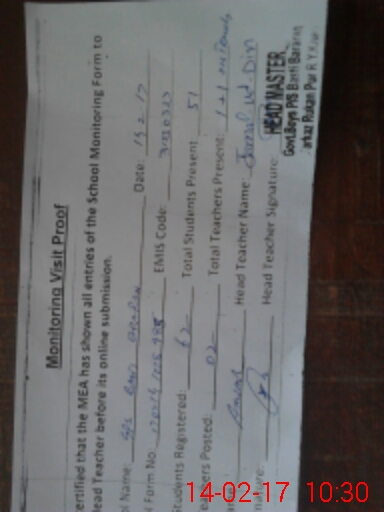 | Certified that this School was Inspected by the Undersigned MEA/DMO Today and the Information Stated Above is as Per Record. | |||||