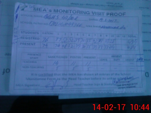 | Certified that this School was Inspected by the Undersigned MEA/DMO Today and the Information Stated Above is as Per Record. | |||||