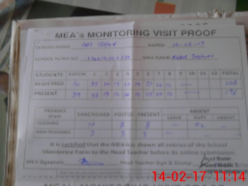 | Attendance Register | Head Teacher | MEA with School | Visit Proof |