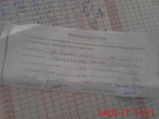 | Attendance Register | Head Teacher | MEA with School | Visit Proof |