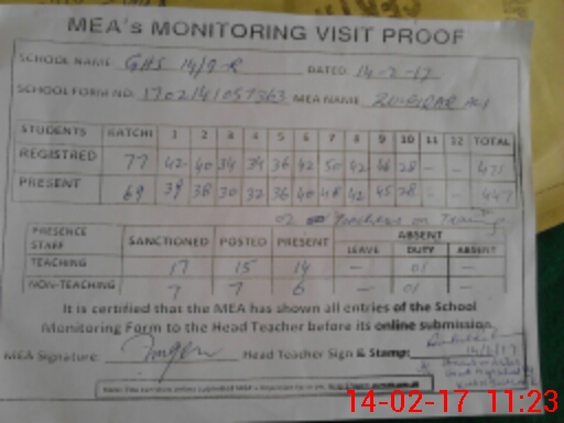 | Attendance Register | Head Teacher | MEA with School | Visit Proof |