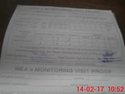 | Attendance Register | Head Teacher | MEA with School | Visit Proof |