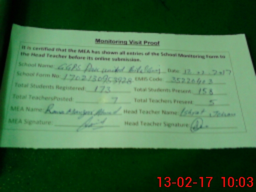 | Certified that this School was Inspected by the Undersigned MEA/DMO Today and the Information Stated Above is as Per Record. | |||||