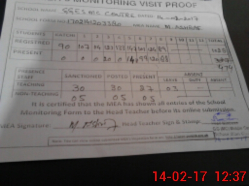 | Attendance Register | Head Teacher | MEA with School | Visit Proof |