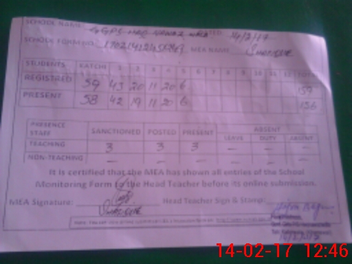 | Attendance Register | Head Teacher | MEA with School | Visit Proof |