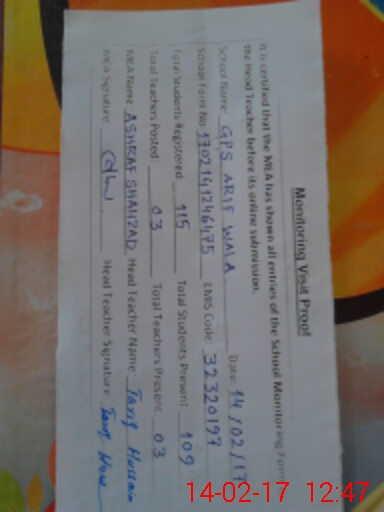 | EMIS Code: 32320197 | Name of School: GPS ARIF WALA | |||