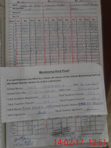 | Attendance Register | Head Teacher | MEA with School | Visit Proof |