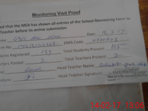 | Certified that this School was Inspected by the Undersigned MEA/DMO Today and the Information Stated Above is as Per Record. | |||||