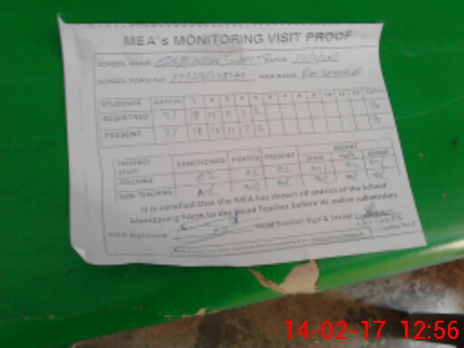 | Attendance Register | Head Teacher | MEA with School | Visit Proof |