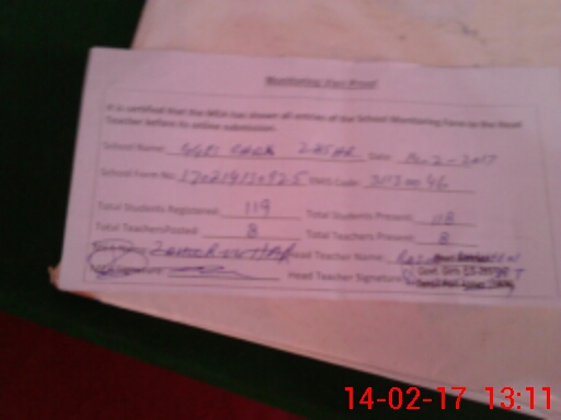 | Certified that this School was Inspected by the Undersigned MEA/DMO Today and the Information Stated Above is as Per Record. | |||||