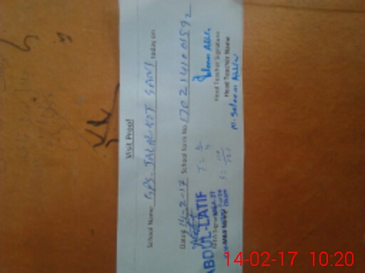 | Attendance Register | Head Teacher | MEA with School | Visit Proof |