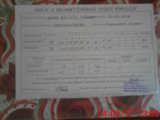 | Attendance Register | Head Teacher | MEA with School | Visit Proof |