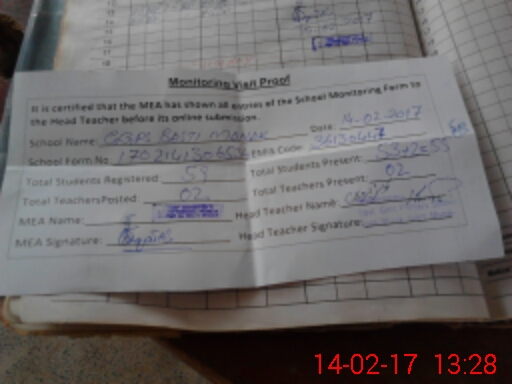 | Attendance Register | Head Teacher | MEA with School | Visit Proof |