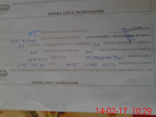| Monitoring Date: 14-02-2017 | Start Time: 14-02-2017 09:46 AM | End Time: 14-02-2017 10:29 AM | Name of MEA: Za**** Hu**** | |