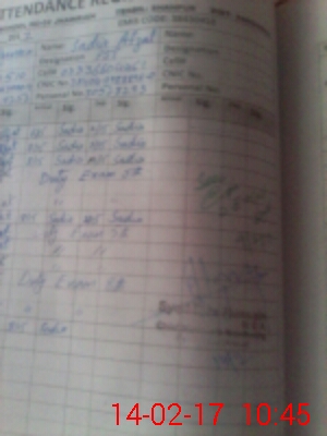 | CNIC | Full Name | Designation | R/C | Absence During Last Calender Month |