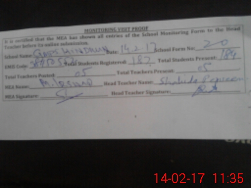 | Certified that this School was Inspected by the Undersigned MEA/DMO Today and the Information Stated Above is as Per Record. | |||||