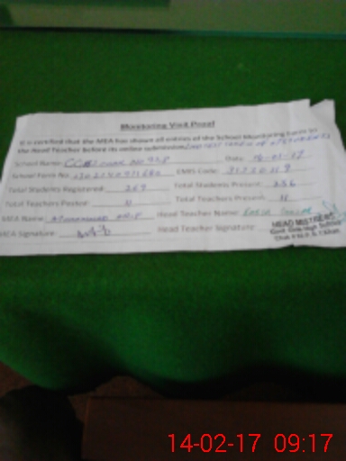 | Attendance Register | Head Teacher | MEA with School | Visit Proof |