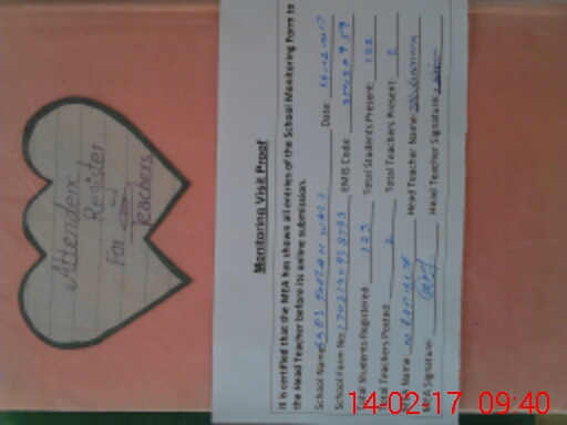| Attendance Register | Head Teacher | MEA with School | Visit Proof |