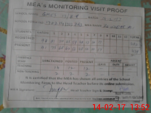 | Certified that this School was Inspected by the Undersigned MEA/DMO Today and the Information Stated Above is as Per Record. | |||||