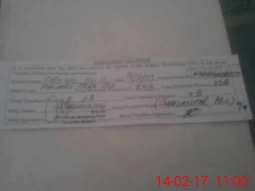 | EMIS Code: 38420400 | Name of School: GPS MC NO. 11 FACTORY AREA SARGODHA | |||