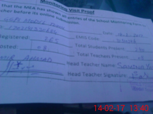 | EMIS Code: 31310346 | Name of School: GGPS MODEL TOWN | |||