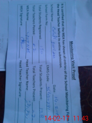 | Certified that this School was Inspected by the Undersigned MEA/DMO Today and the Information Stated Above is as Per Record. | |||||