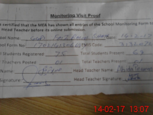 | EMIS Code: 31320727 | Name of School: GGPS FAIZ RASOOL SHAH | |||