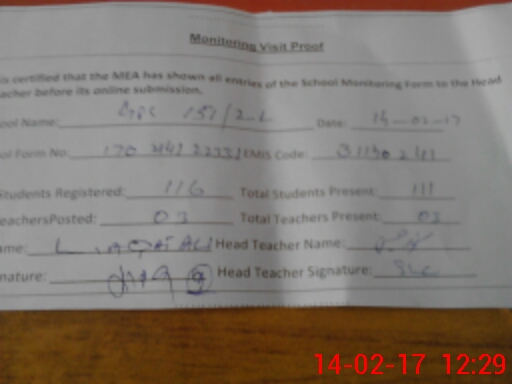 | Certified that this School was Inspected by the Undersigned MEA/DMO Today and the Information Stated Above is as Per Record. | |||||