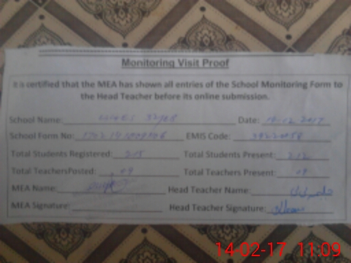 | Certified that this School was Inspected by the Undersigned MEA/DMO Today and the Information Stated Above is as Per Record. | |||||
