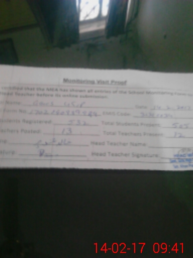| Attendance Register | Head Teacher | MEA with School | Visit Proof |