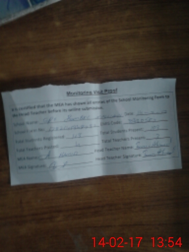 | Attendance Register | Head Teacher | MEA with School | Visit Proof |