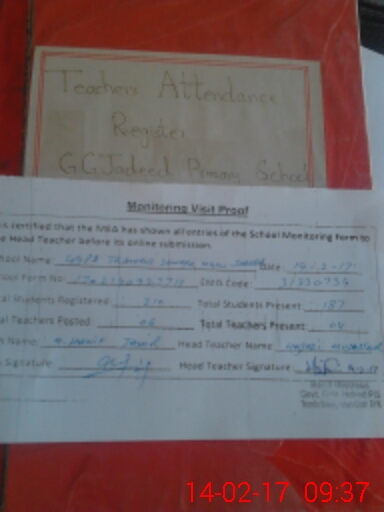 | Attendance Register | Head Teacher | MEA with School | Visit Proof |