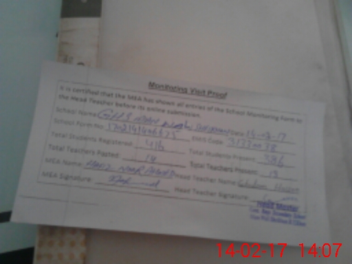 | Attendance Register | Head Teacher | MEA with School | Visit Proof |