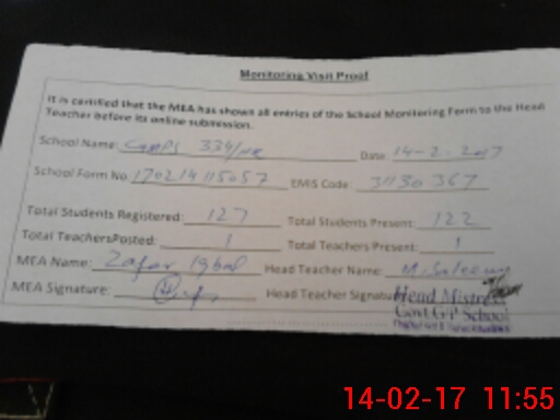 | Attendance Register | Head Teacher | MEA with School | Visit Proof |