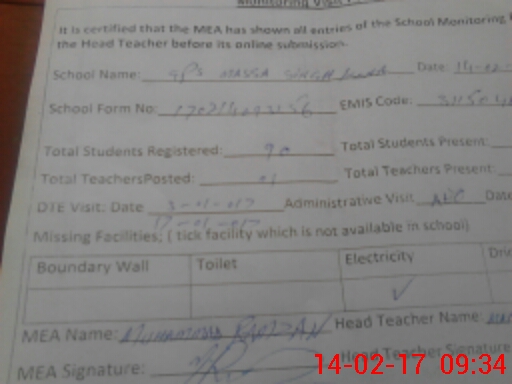 | EMIS Code: 31150464 | Name of School: GPS MASA SINGH KONA | |||