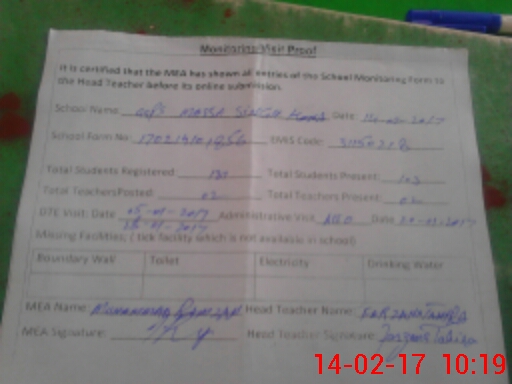 | Certified that this School was Inspected by the Undersigned MEA/DMO Today and the Information Stated Above is as Per Record. | |||||