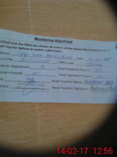 | Certified that this School was Inspected by the Undersigned MEA/DMO Today and the Information Stated Above is as Per Record. | |||||