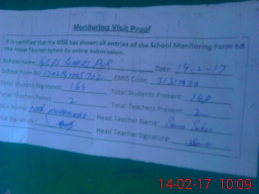 | EMIS Code: 31310470 | Name of School: GGPS GHAZI PUR | |||