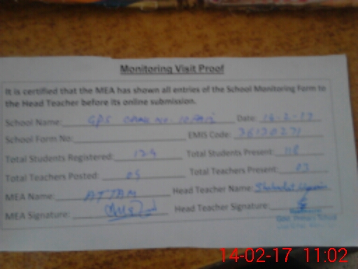 | Certified that this School was Inspected by the Undersigned MEA/DMO Today and the Information Stated Above is as Per Record. | |||||