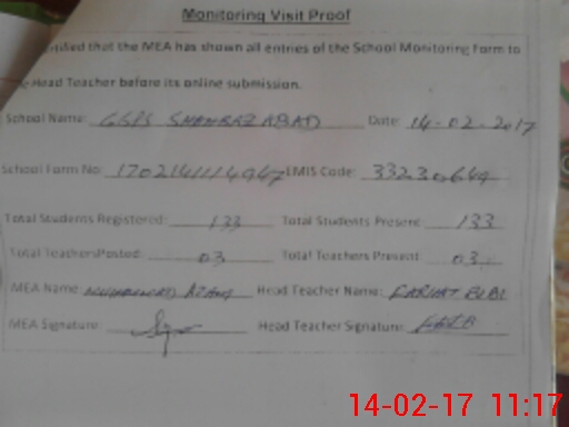 | EMIS Code: 33230649 | Name of School: GGPS SHAHBAZ ABAD | |||