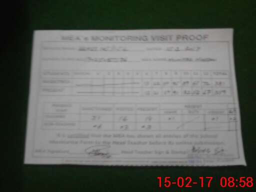 | Attendance Register | Head Teacher | MEA with School | Visit Proof |
