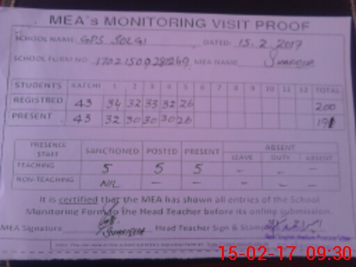 | EMIS Code: 36410169 | Name of School: GPS SOLGI, P/O JAWIND SING WALA, KABIRWALA | |||