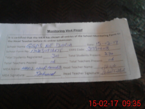 | Certified that this School was Inspected by the Undersigned MEA/DMO Today and the Information Stated Above is as Per Record. | |||||